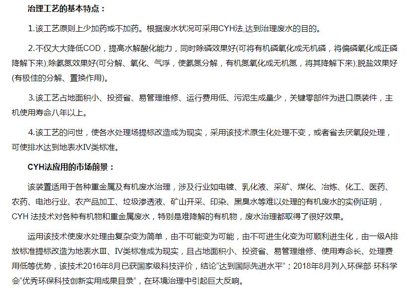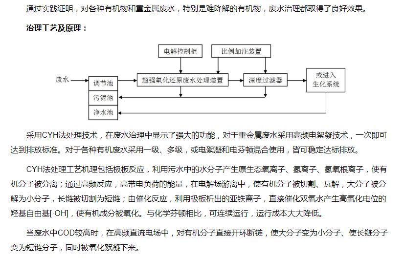 超強(qiáng)氧化還原廢水處理裝置(CYH法)處理各種有機(jī)廢水、各種重金屬廢水